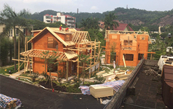 輕型木屋是以框架搭建的建筑,墻體框架主要用3.8cm*8.9cm的SPF材料,中間用保