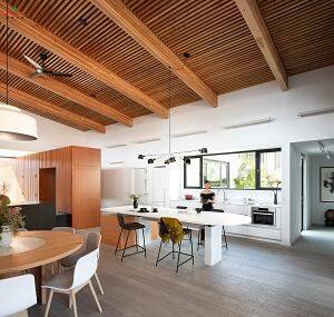 特色餐廳的裝飾吊頂用上木橫梁和木吊頂,配上白色的墻壁,瞬間高大尚...