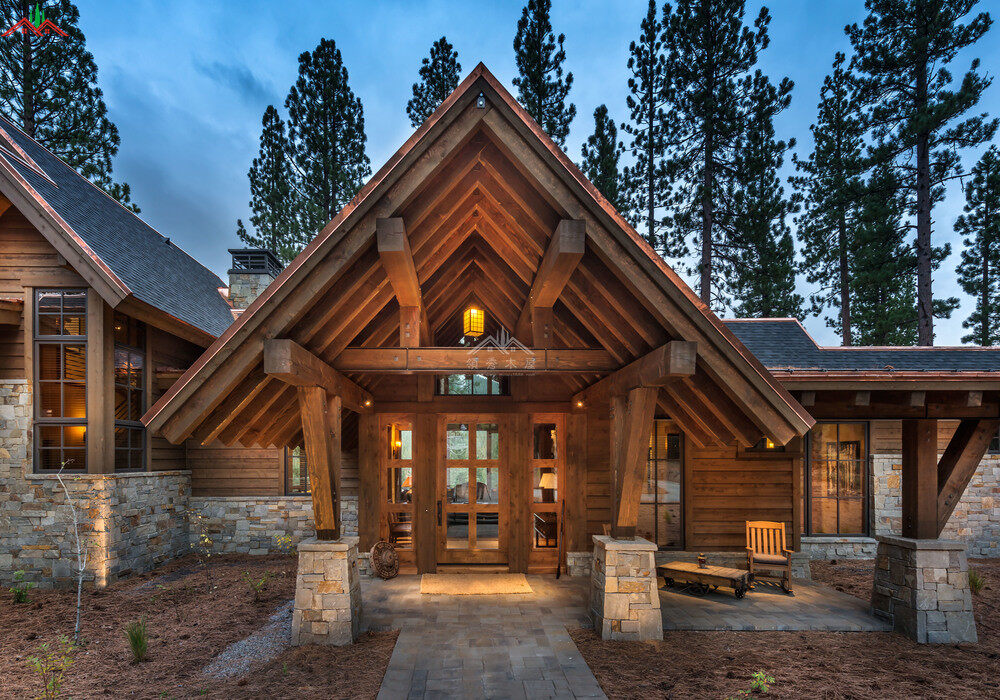 美國(guó)花旗松建造高檔梁柱木別墅...