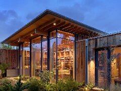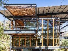 彩鋼屋頂、鋼材骨架、木材裝飾、混泥土地下室的現(xiàn)代木屋...
