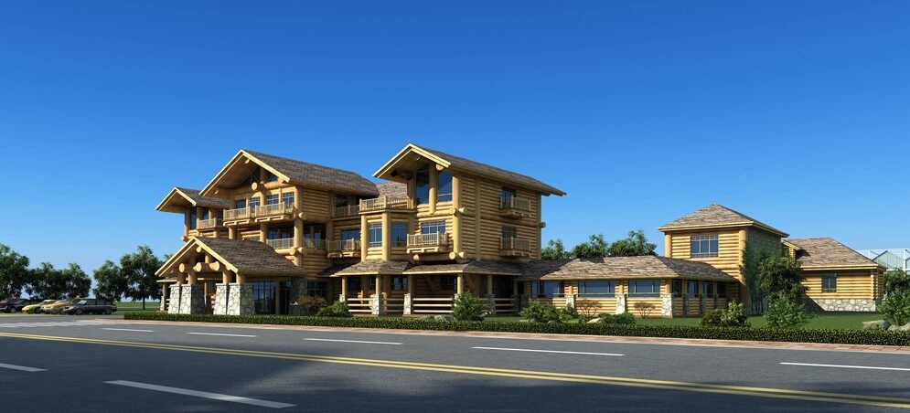 木結(jié)構與磚混結(jié)構結(jié)合的木屋...