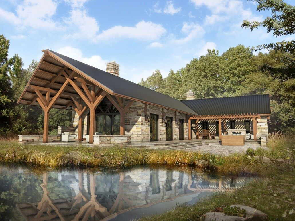 以木為框的玻璃墻面木屋
