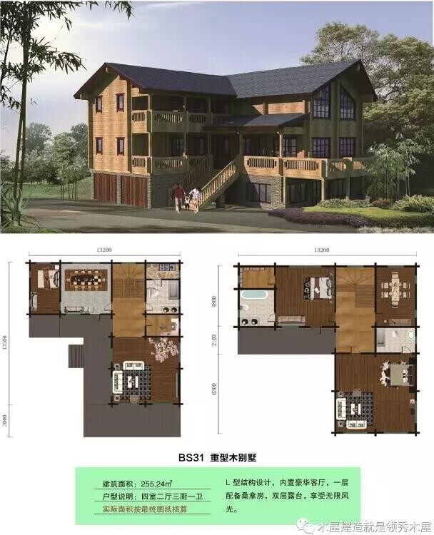 雙層木別墅效果設計圖+平面圖